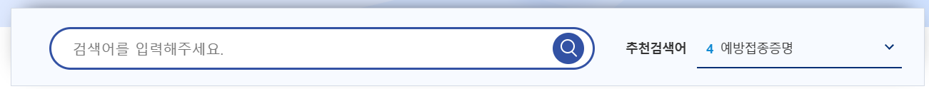 검색창에 발급 또는 신청을 하려는 것을 입력하시면 되는데 예방접종증명서를 발급받고 싶다면 예방접종증명서라고 입력후 검색하시면 됩니다.
