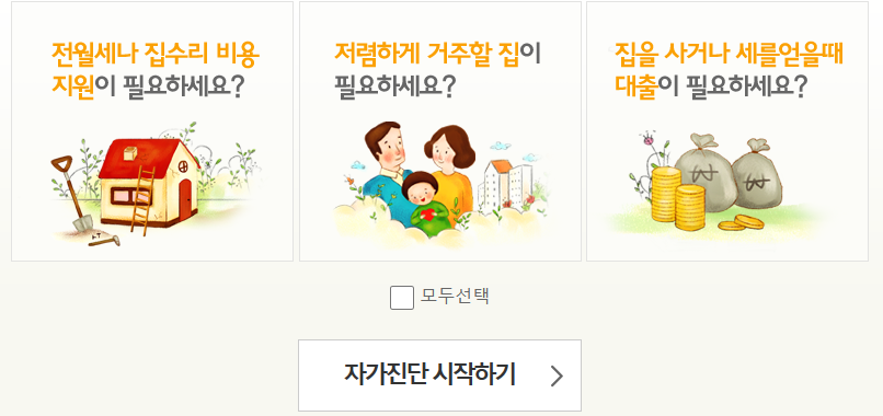 마지막으로 주거급여뿐만 아니라 모든 자격을 확인하고 싶으시면 자가진단을 이용하시면 됩니다.