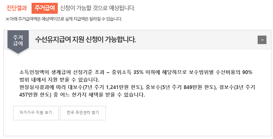 보시면 수선유지급여 지원 신청이 가능하다고 되어 있습니다.