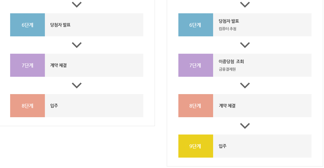 6단계는 당첨자 발표, 7단계 계약 체결, 8단계 입주입니다.