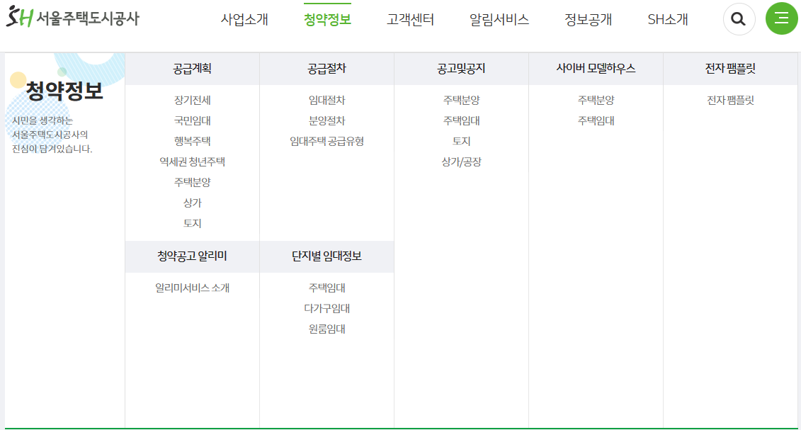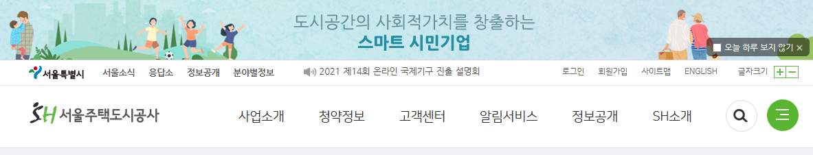 sh공사 홈페이지에 접속하시면 여러가지가 보일 것입니다.