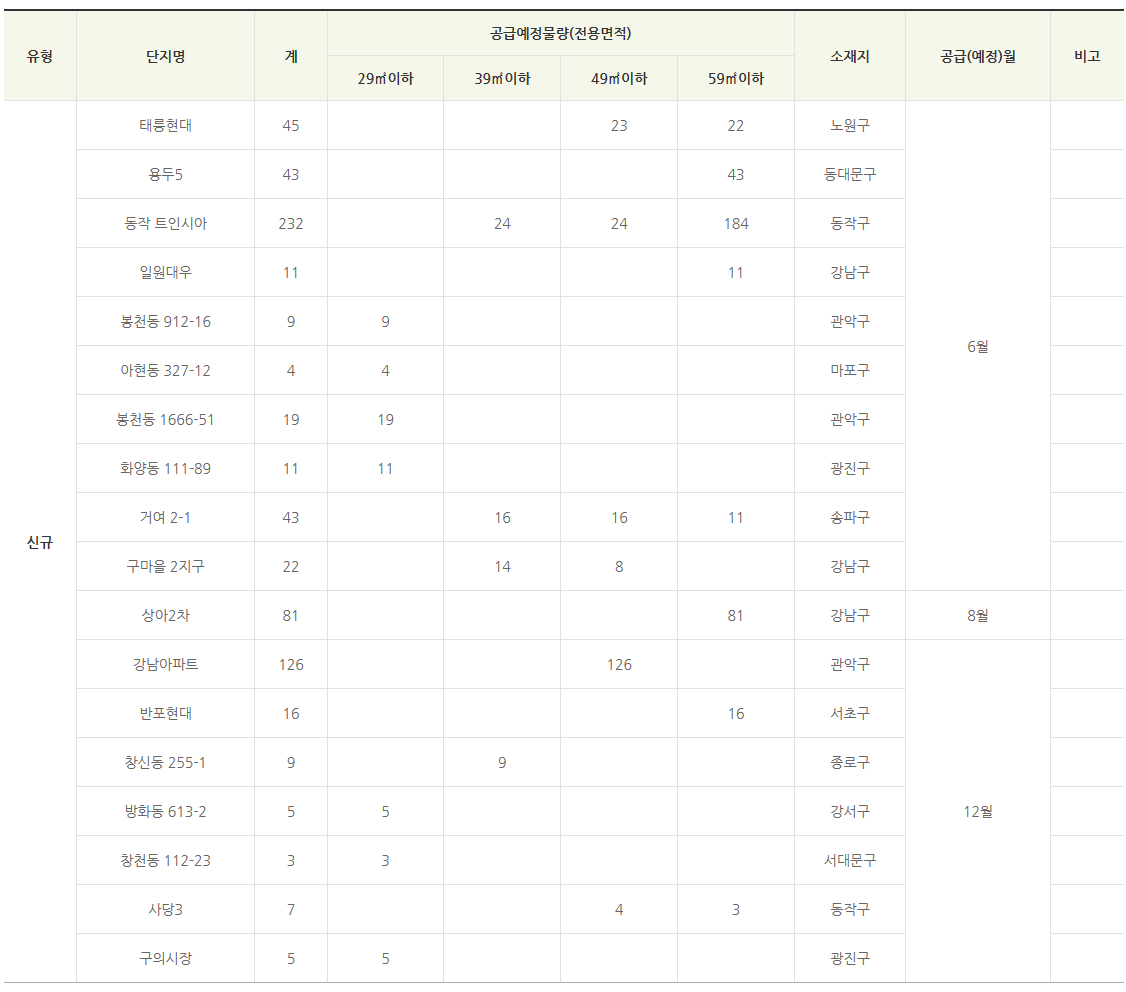 행복주택은 노원구, 동대문구, 동작구, 강남구, 관악구, 마포구, 광진구, 송파구 등에 공급이 된다고 되어 있습니다.