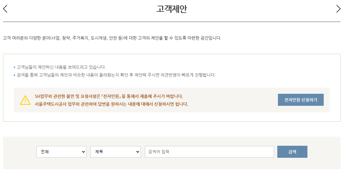 고객제안을 클릭하니 전자 민원 신청하기가 보입니다.
