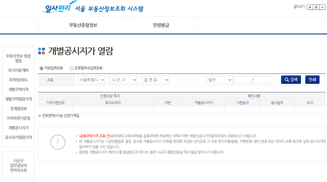 저는 서울지역 공시지가 조회해보도록 하겠습니다.