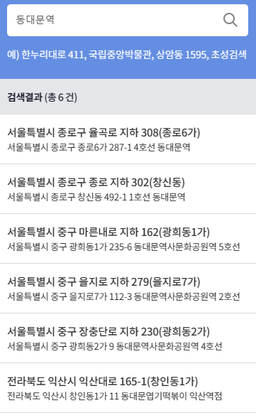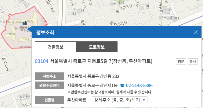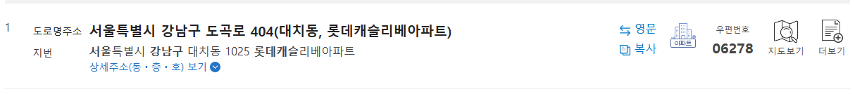 클릭하면 이렇게 도로명주소를 확인할 수가 있습니다.