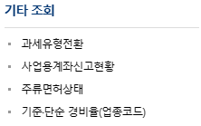 기타조회를 보면 여러가지가 보이실텐데 기타 조회 메뉴 기준,단순경비율 업종코드가 보이시나요?