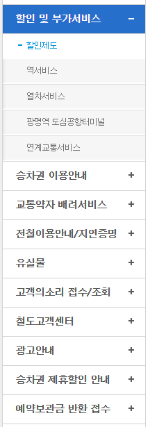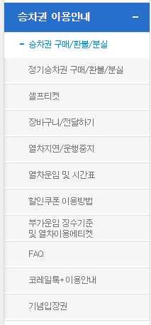승차권 이용안내를 클릭하시면 이용안내에 있는 다른 하위메뉴들이 보일 것입니다.