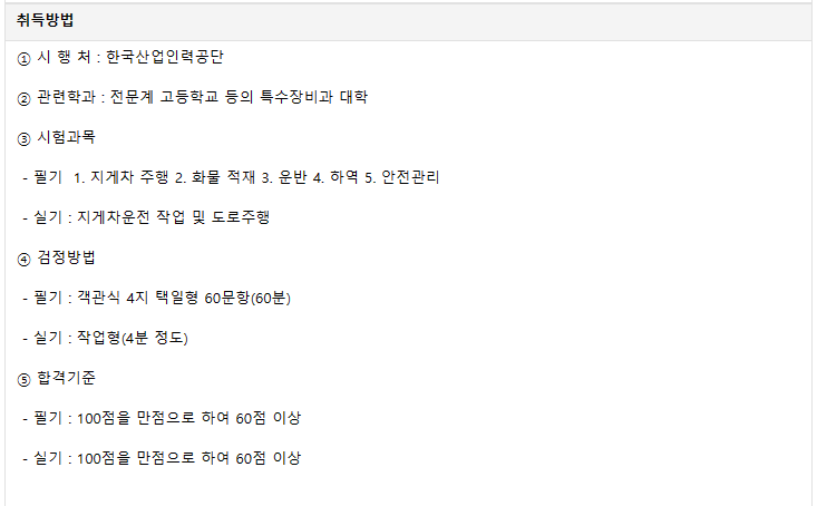 지게차운전기능사 시험일정, 시험과목, 시험방법 등을 설명드렸는데 참고하시기 바랍니다.