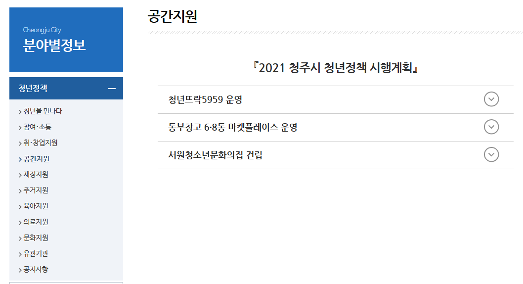 공간지원에서는 청년뜨락, 동부창고 등이 확인됩니다.