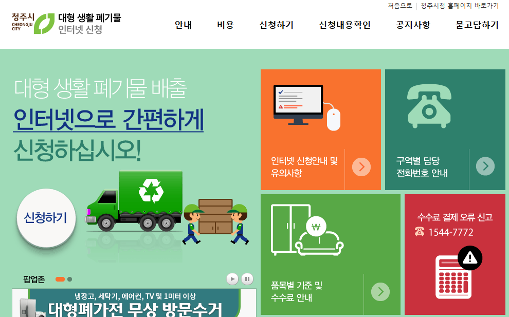 대형폐기물 신고에 곤란하셨던 분들이 많으실텐데 청주에 거주하고 계시는 분들은 청주시청 홈페이지에서 간단하게 배출신고를 인터넷에서 하실 수가 있습니다.